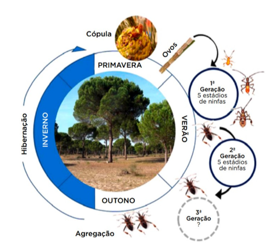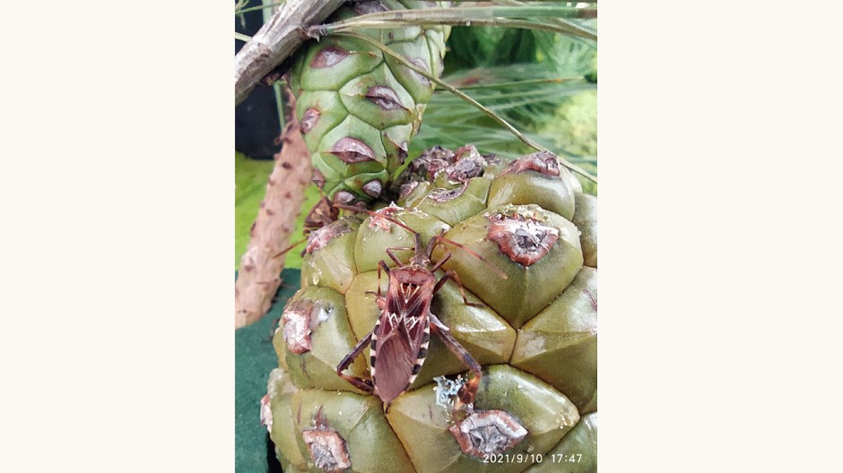 Aviso: Esteja atento à presença de ninfas e adultos sobre as pinhas a colher neste ano (pinhas do 3º ano)